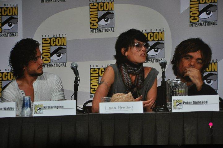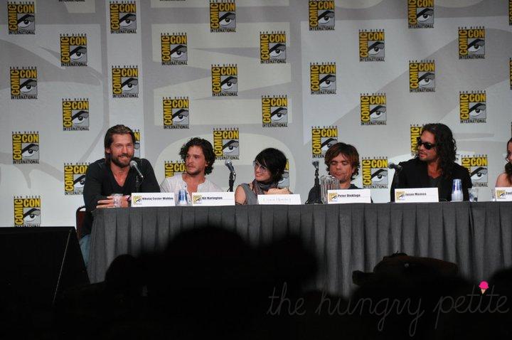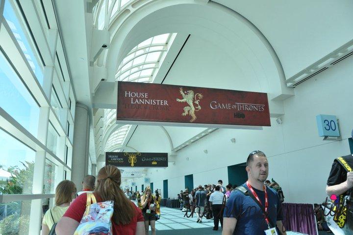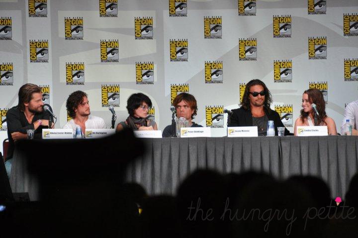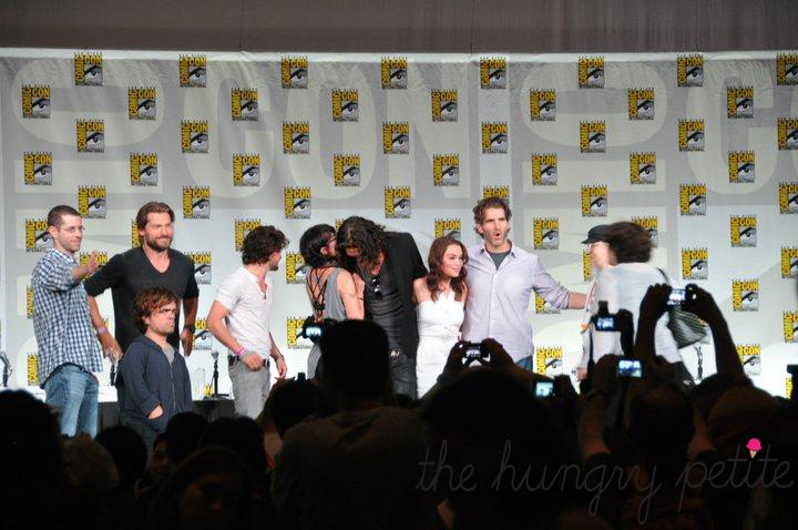 After picking up my badge, I immediately hopped into the Ballroom 20 line for Game of Thrones. It was their first year at SDCC, and the first season had just passed. I stood in line for 4 hours. I got in at the tail end of the Ringer panel (with Sarah Michelle Gellar). That panel gave out a realllllly cute little portable seat as swag (that I had to leave behind in the hotel because it wouldn’t fit in my suitcase, and I was flying directly to Iceland. I still lament that loss). The Game of Thrones panel had author George R. R. Martin as the moderator. The ENTIRE cast was there. It was so awesome to see them all. Lena Headey wasn’t supposed to be there (?) because her name card was handwritten, but I’m glad she showed up. The panel was amazing, and the swag was great too (drawstring bag with book, mousepad, shirt).