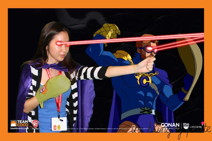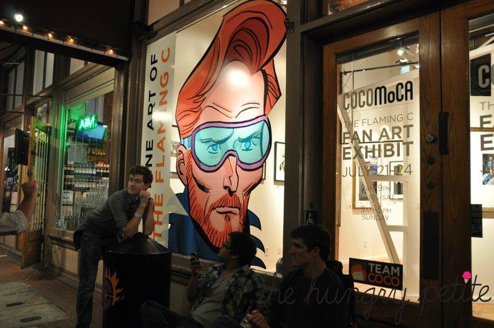 The Conan Museum! Conan O’Brien had his own museum in the Gaslamp District, COCOMoCA, featuring The Flaming C fan art. Seeing all the fan art was very cool. They gave out swag (the oven mitt and cape, haha), and they even passed out hors d’oeuvres on opening night. Conan was at SDCC this year (he made an appearance at the Green Lantern panel), but I didn’t get to see him đŸ˜. Some quick backstory: I have been a fan of Conan O’Brien since his first show aired on August 30, 1993. Being in Houston, when NBC moved his show to air after 1am, I would stay up and watch even on school nights. I absorbed everything Conan. My dog’s (RIP Oakie, 2000-2015) middle name was Conan O’Brien. In Feb 2006 I sat at the same communal table with him and his family (with his wife, nanny, his son Beckett who was just a few months old, and his daughter Neve was only 2, and they were both the cutest), at Bouchon Bakery in New York at Columbus Circle, but I didn’t want to bother him with his family, especially since his kids were there. I regret not asking him for a photo after they finished lunch. Anyway…