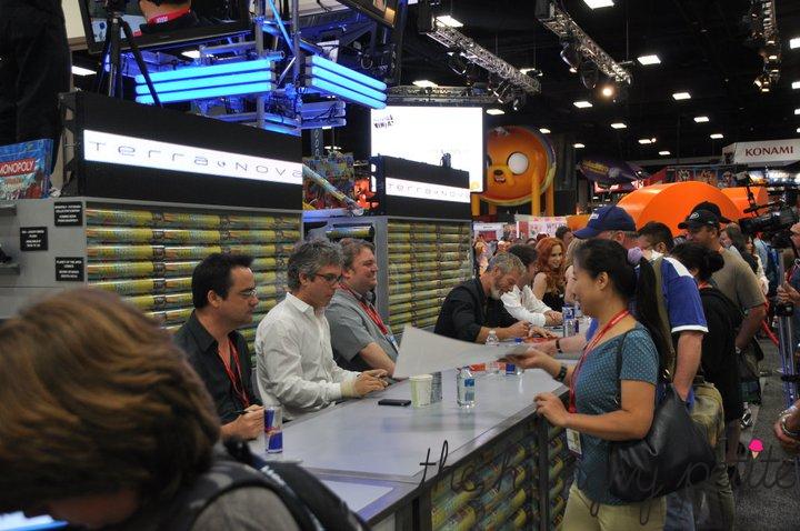 Walking the Con floor alone was a little lonely this year. Attending Comic-Con is much better with a friend, but I was able to meet up with acquaintances every now and then. Because I was alone, the security staff (who tell people to move along and not linger at the autograph booths) took pity on me, and they let me linger just a little longer to snap some nice closeups. I saw the cast of Wilfred (Elijah Wood, Jason Gann) signing autographs, Bob’s Burgers (Kristen Schaal– fan of hers since Flight of the Conchords, Eugene Mirman, H. Jon Benjamin, Dan Mintz, etc) cast signing posters, Griff the Invisible (Ryan Kwanten), the cast of Chuck, The Avengers (Clark Gregg), Person of Interest (Michael Emerson, Taraji P. Henson), The Finder (Geoff Stults, Michael Clarke Duncan), Terra Nova cast, Family Guy, you get the gist, there were a lot of celebs signing autographs! I also rode the Hard Rock elevator with a barefoot Thomas Jane– I love him on Hung and as The Punisher (he smiled and winked at me, which made me swoon), and I had lunch just a few feet away from John Cho, and also Peter Dinklage with his wife at Nobu!