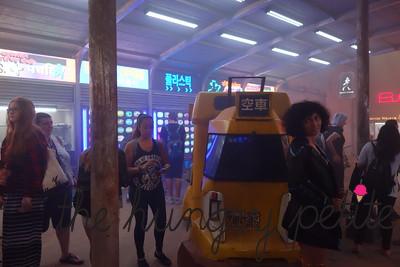 But what truly blew me away was what came next. After the VR, the curtains opened, and you stepped out into a neon-lit, Blade Runner 2049–style street environment, and it was incredible. The attention to detail was next-level: props, costumes, a Spinner vehicle, even actors in character roaming the streets, interacting with visitors. It even “rained” inside the experience! It felt like you’d actually landed in the film’s dystopian LA, and every corner was a photo-op waiting to happen. There were even little touches like themed noodle stands (we slurped the noodles!) and a bar area with specialty drinks, which made wandering the set feel like a complete, lived-in city. The offsite was like a mini-vacation into the world of Blade Runner 2049.