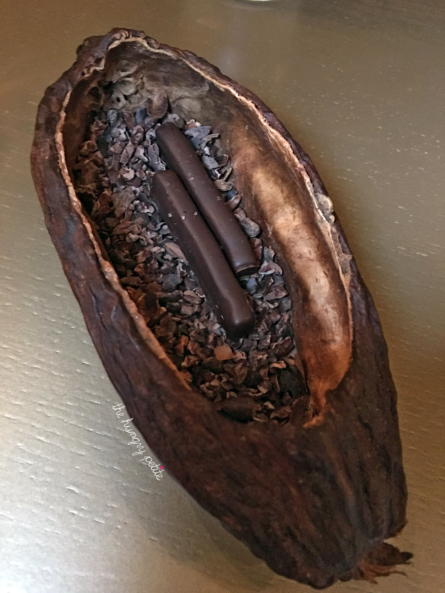Mignardes of chocolate served in a cacao shell