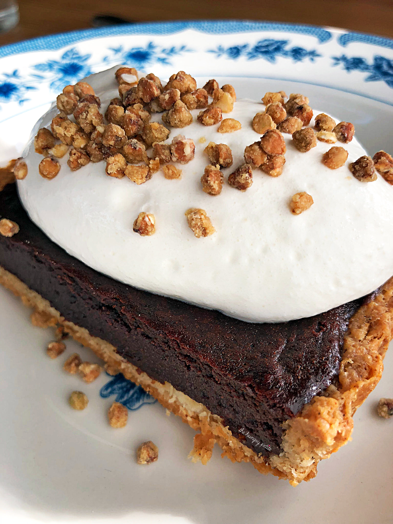 Chocolate Tart, grapefruit cream & candied buckwheat.