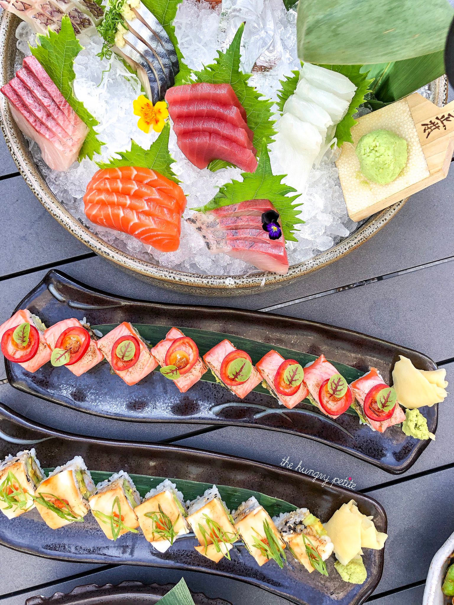 Seared salmon and unagi maki
